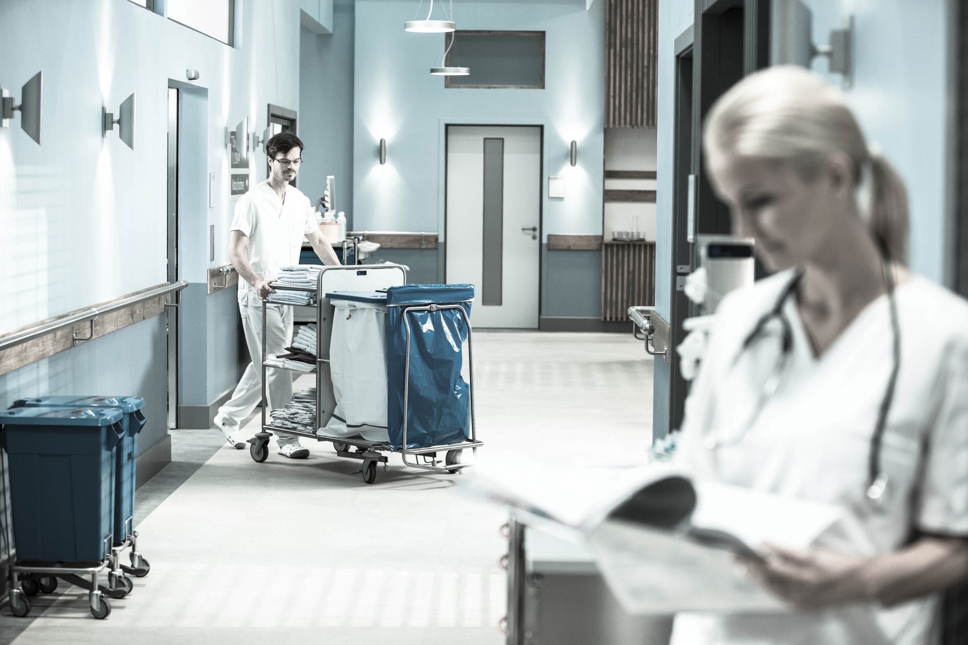 Nos produits Hammerlit : Linen logistics, Case carts medical logistics, Sterile goods logistics, OR equipment, Waste collection.