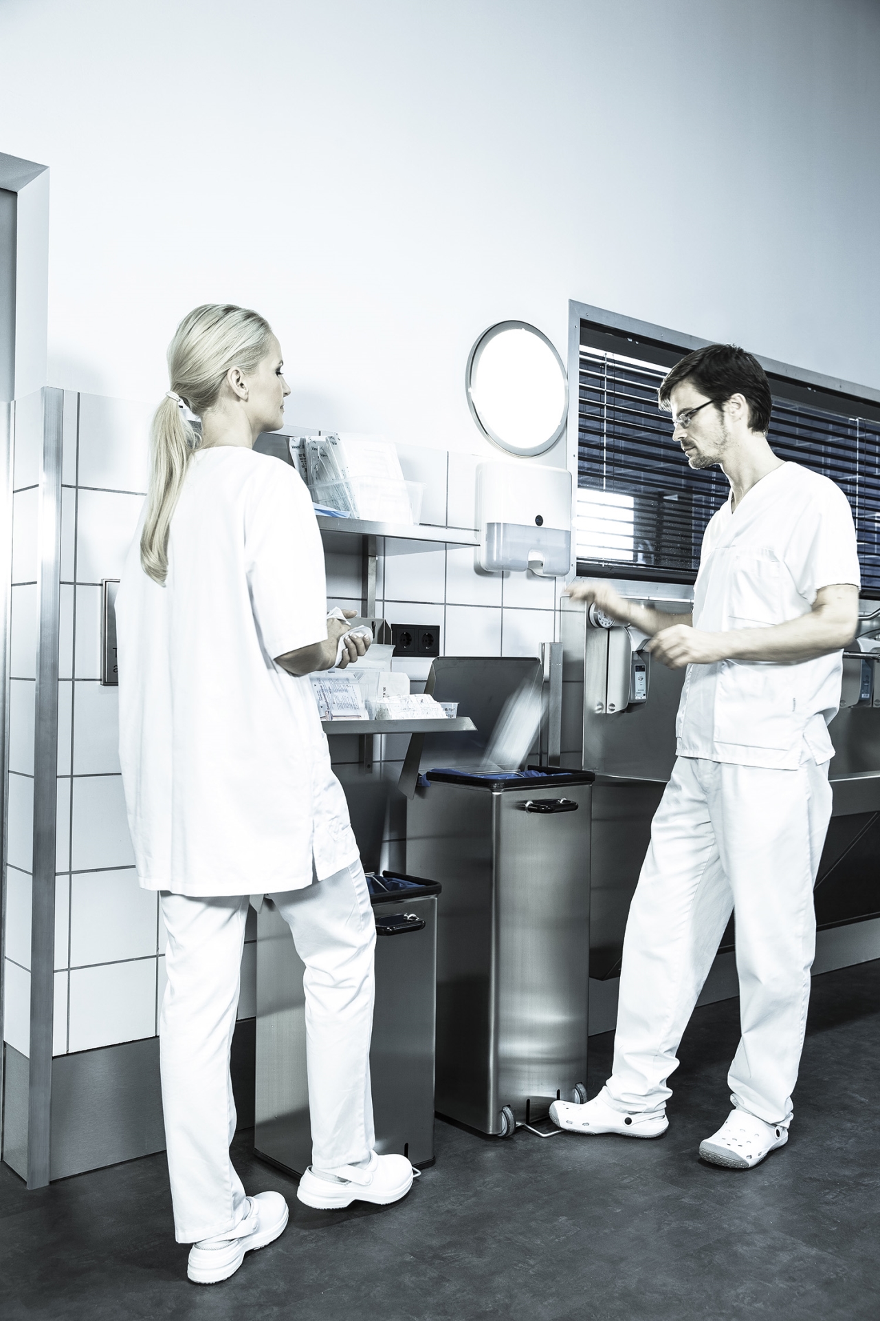 Avec les produits Hammerlit, nous pouvons maintenant encore mieux répondre à la demande et aux souhaits des services de stérilisation centrale, avec des chariots de cas en acier inoxydable pour le transport de produits stériles et des chariots pour la distribution de linge et déchets.
