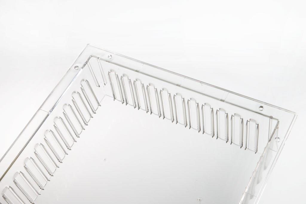 Nous avons des modules transparents, et des modules ABS blanc cassé, depuis longtemps, pratiquement depuis la fondation de notre entreprise. Et surtout des bacs fermés de 50, 100 et 200 mm. Confectionnés en polycarbonate transparent, qui vous permet de voir ce qui se trouve dans le module. Les modules en polycarbonates sont aussi faciles à nettoyer que les modules ABS, à la main ou à la machine. Les séparations sont disponibles en plastique transparent assorti.