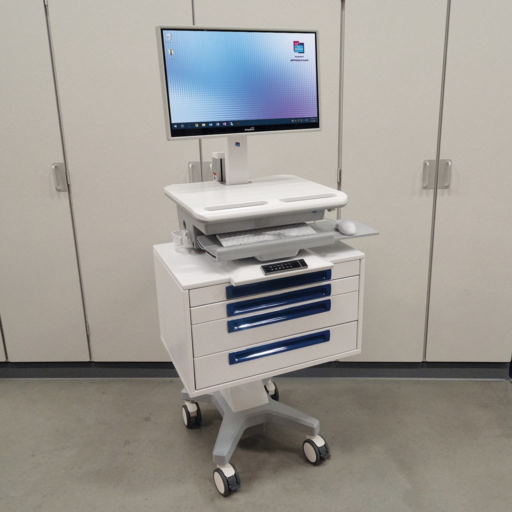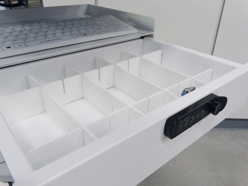 Il est possible de connecter plusieurs types de tiroirs et de cassettes à médicaments à nos chariots informatiques pour la distribution de médicaments ou à d’autres usages. La fermeture des tiroirs et des cassettes est possible à l’aide de différentes sortes de serrures.