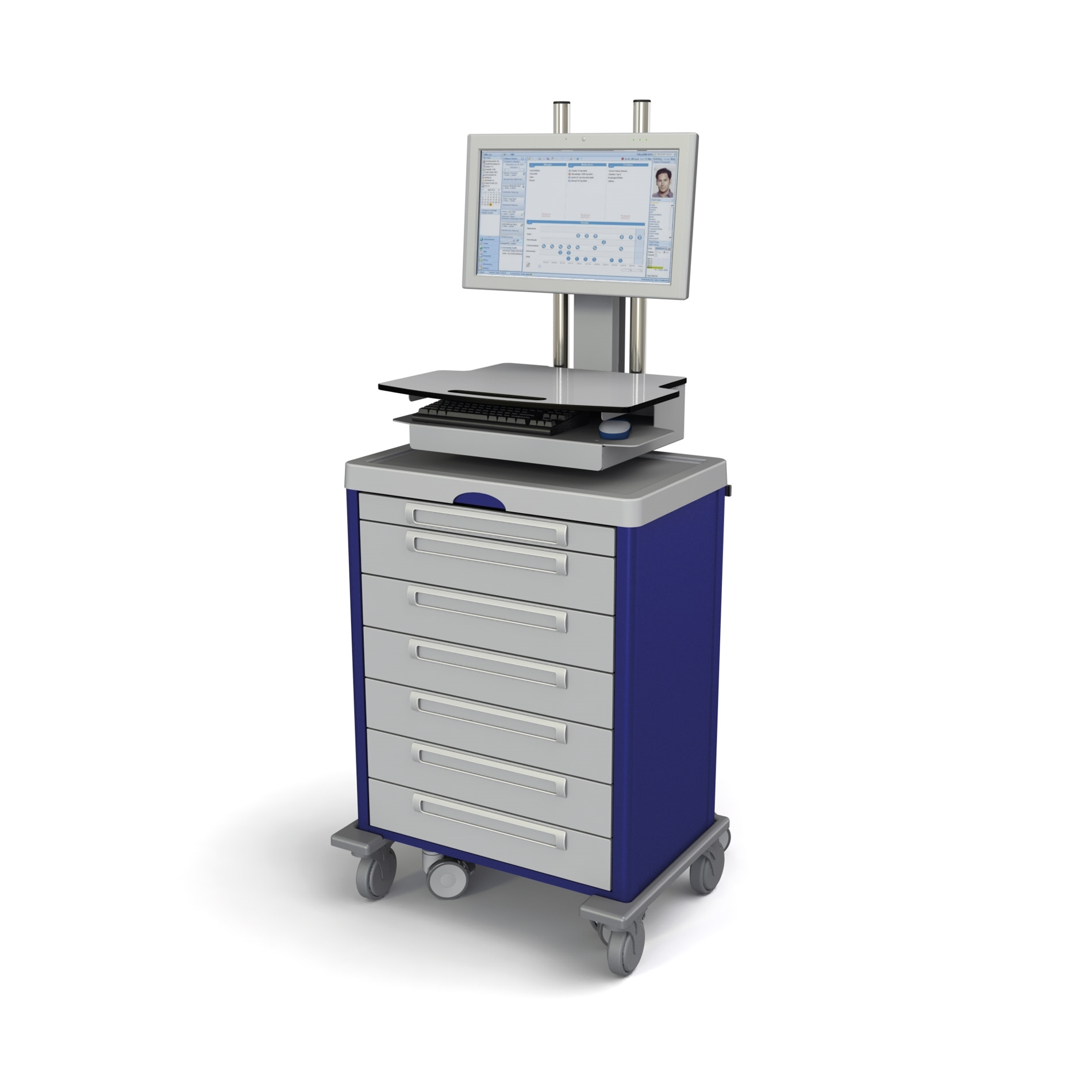 Le chariot informatique All Modul compatible se combine idéalement avec l'ordinateur médical DT Research et un clavier et une souris. Pour les différents accessoires, voir notamment notre dossier chariot à tiroirs.