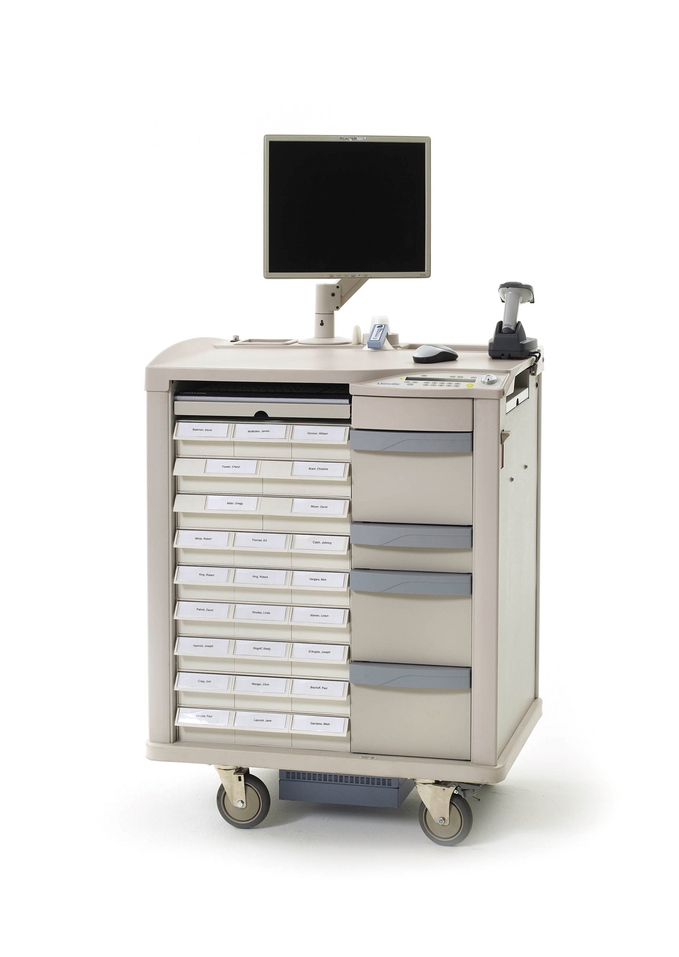 • Répartition flexible à l'aide de bacs à médicaments individuels standard ou de tiroirs.