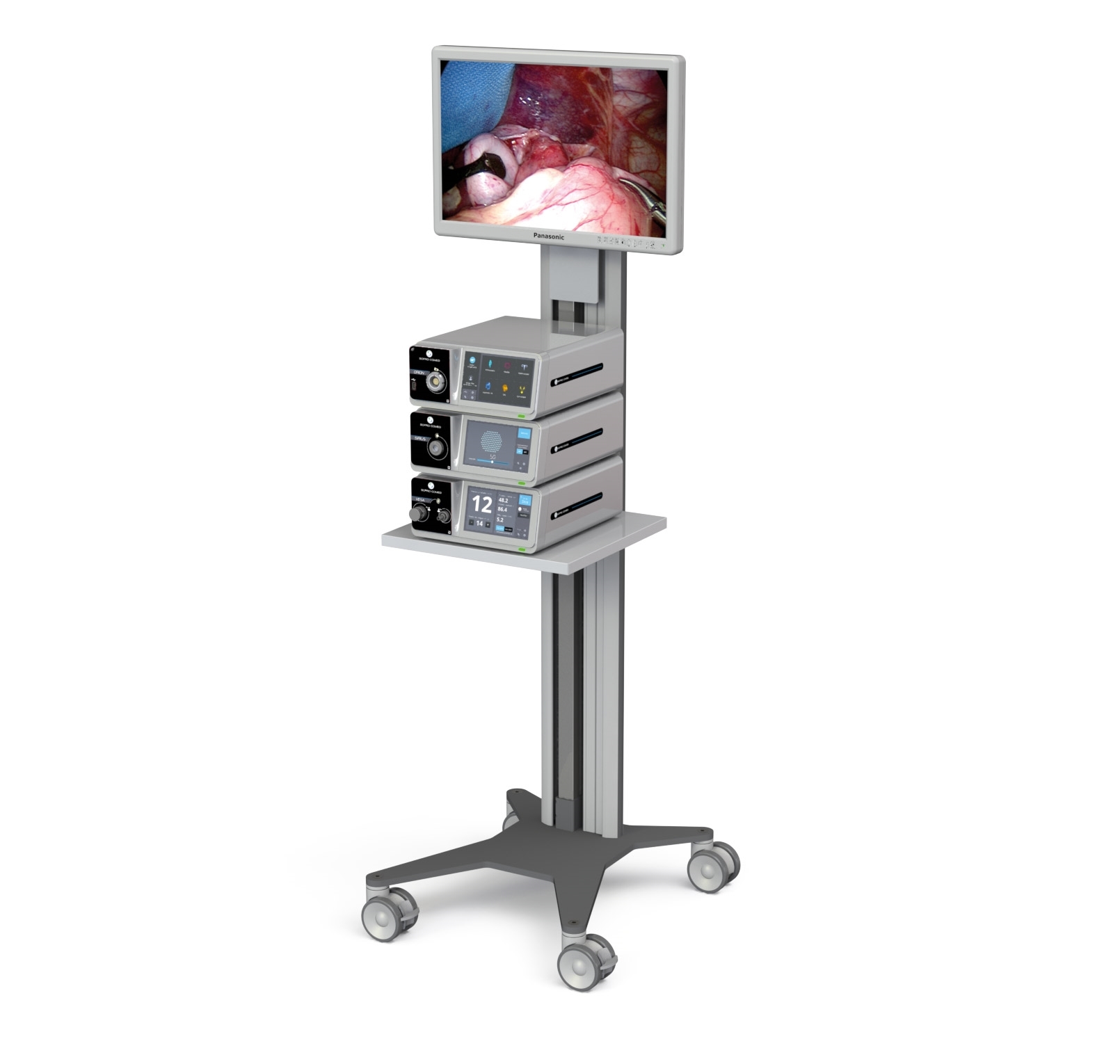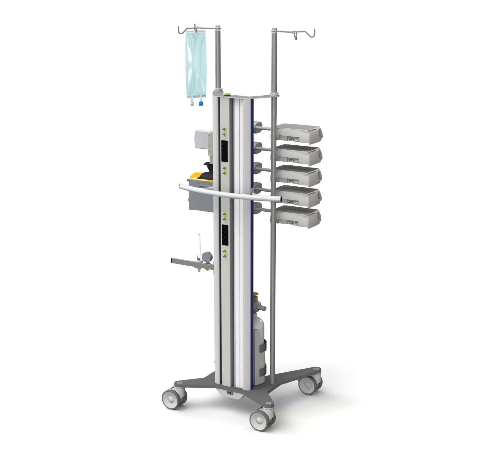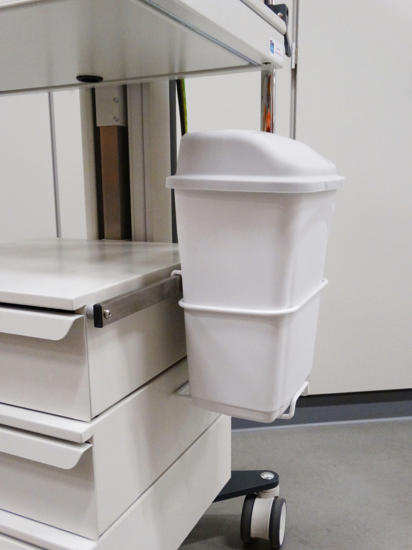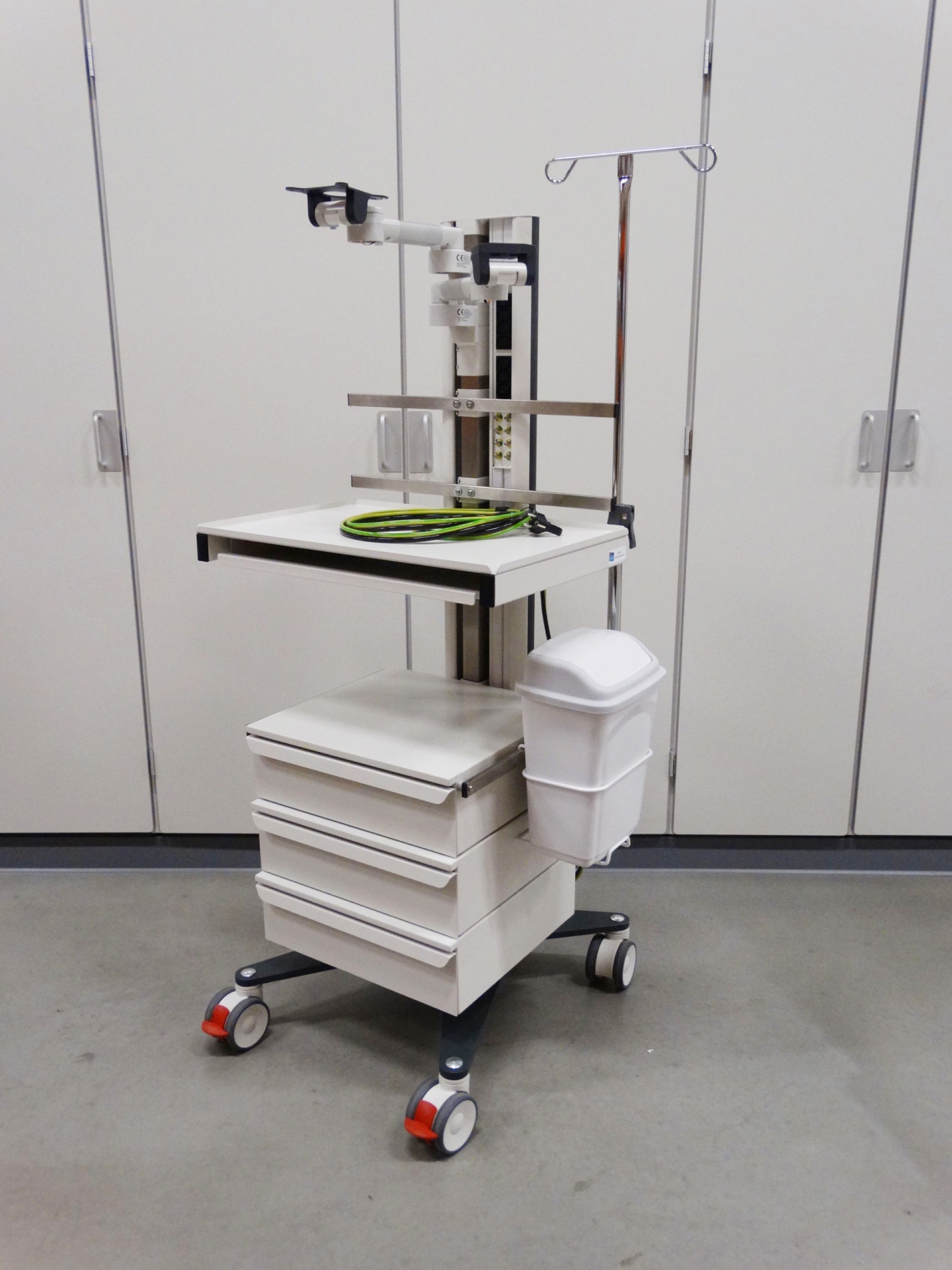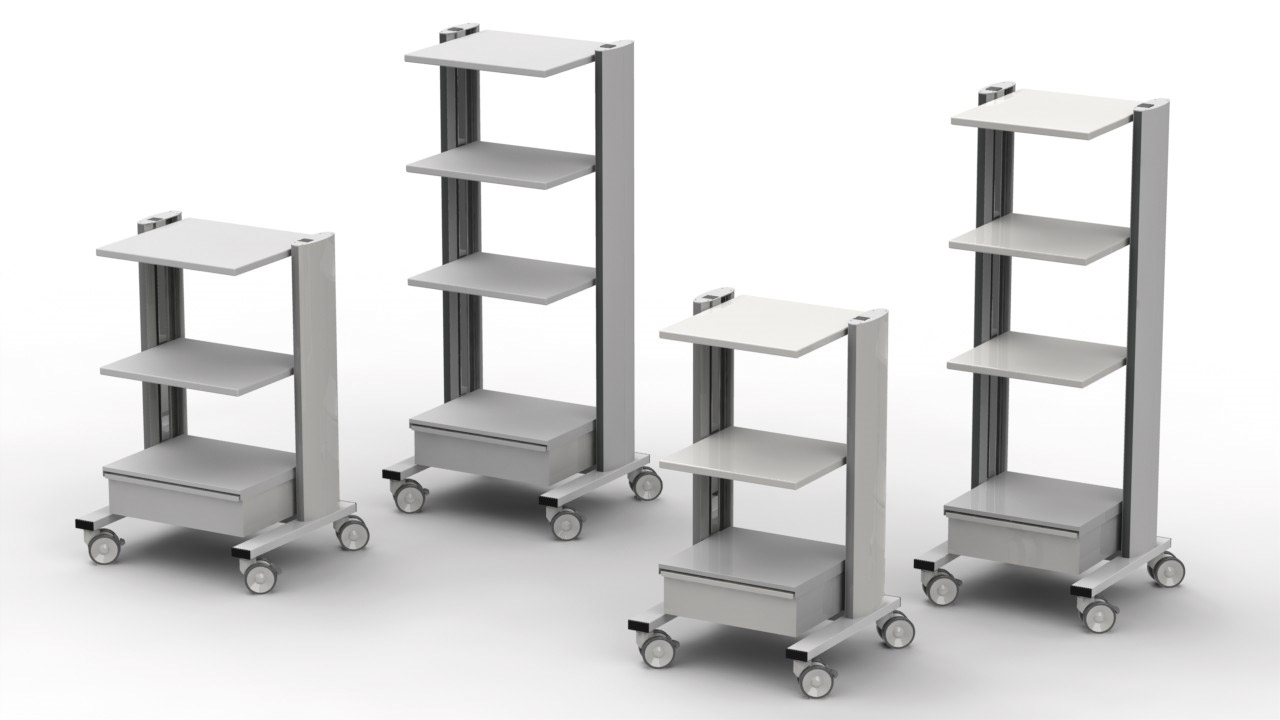 Les chariots pour appareils médicaux et informatiques universels se combinent idéalement avec des systèmes d'alimentation sans interruption, des transformateurs médicaux et un bras de support médical CIM-med.