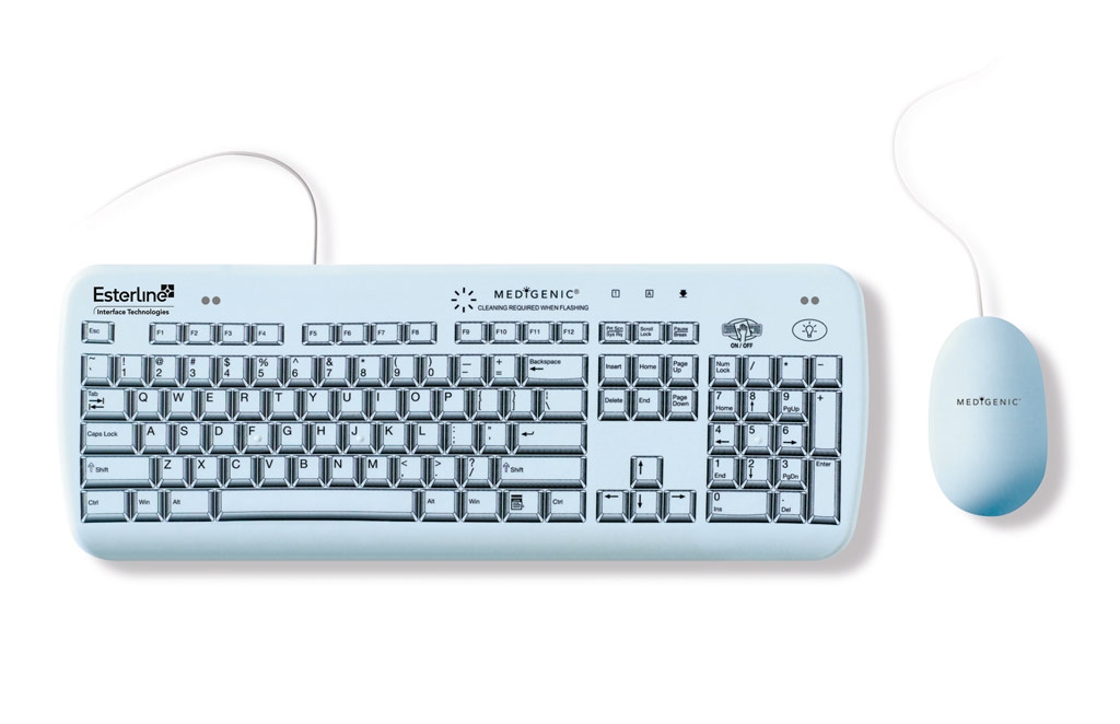 La souris médical Medigenic est étanche sous l’eau (IP65) et est facile à désinfecter avec des sprays de nettoyage médicaux et des linguettes. La conception sans aspérités empêche la propagation des bactéries. Un atout essentiel et pratique, partout où les exigences d'hygiène sont particulièrement élevées, dans la salle d'opération, aux soins intensifs, etc.