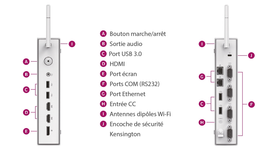Le Micro PC s'associe parfaitement avec le moniteur médical DT 724. Le moniteur médical est doté d'une sortie unique qui permet d'alimenter des clients légers notamment.
