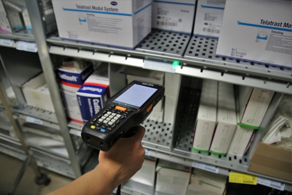 Les terminaux Datalogic sont aujourd'hui utilisés au quotidien au sein de l'hôpital. En début de journée, le personnel de l'entrepôt s'attelle à contrôler les stocks de travail des 80 entrepôts de service. Les fiches de stock sont scannées lorsque cela est nécessaire. Le système ERP exploite tous les scans pour générer les commandes qui sont regroupées dans l'entrepôt central. Les terminaux Datalogic servent également à préparer les commandes et réceptionner les marchandises.