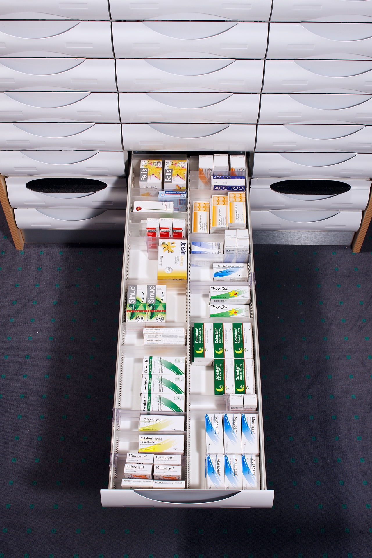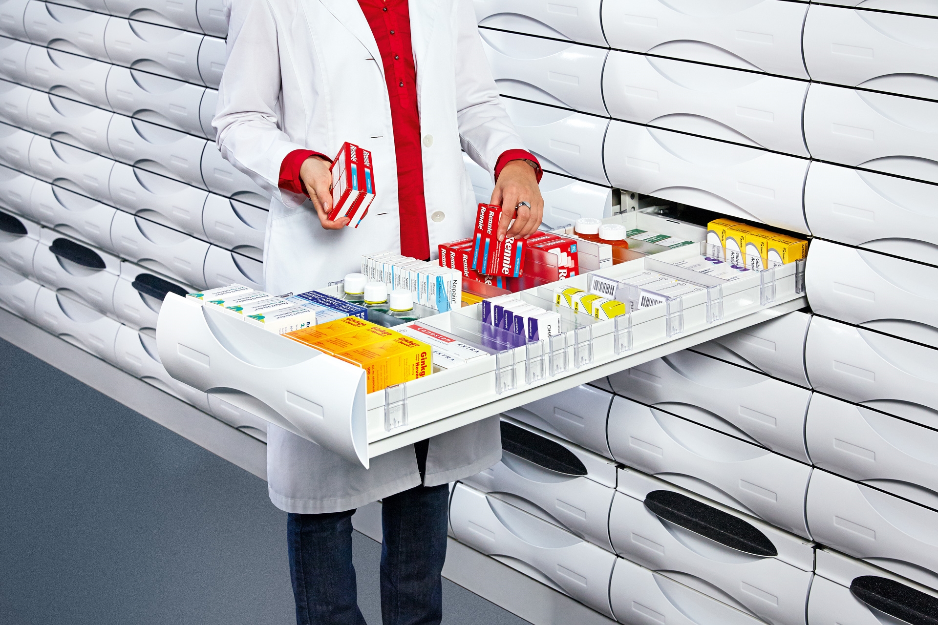 Les armoires à médicaments à tiroirs de Willach pharmacy solutions sont spécialement conçues pour ranger et délivrer des médicaments dans les pharmacies et les hôpitaux. Aucun autre système ne permet de ranger autant de conditionnements dans un même espace.