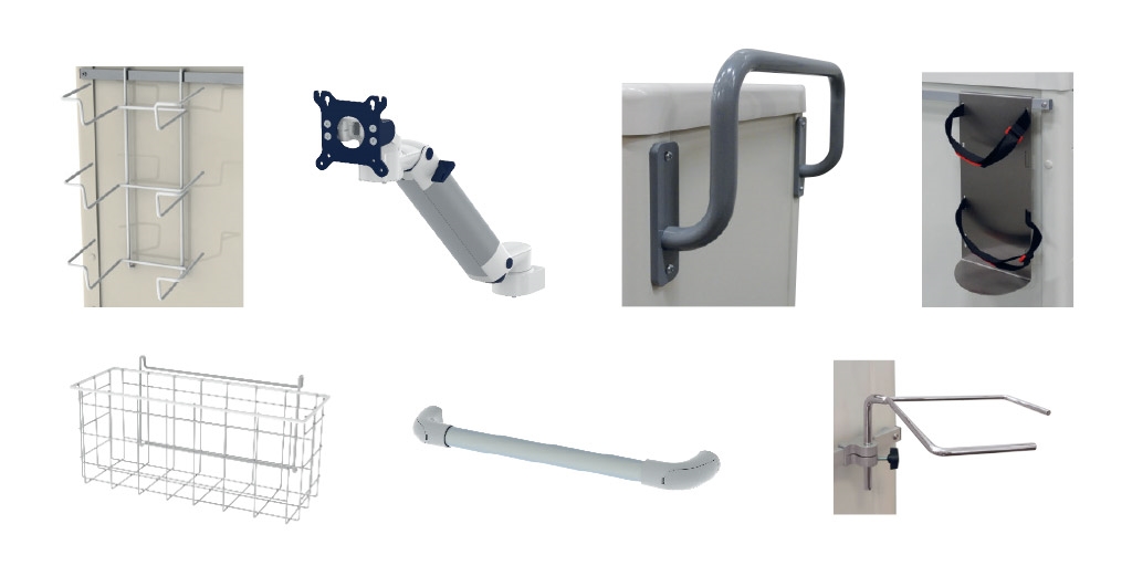 Outre les accessoires de prédilection pour un chariot d'anesthésie, nous proposons bien d'autres accessoires qui peuvent vous être utiles, tels que divers plans de travail en inox ou plastique, un support universel pour bouteille d'oxygène en inox ou un verrou à scellé. Tous nos accessoires sont compatibles avec nos chariots modulaires (600 x 400 mm). Vous recherchez un autre modèle de chariot de sédation ? Consultez la page de nos chariots à tiroirs. Vous pouvez également télécharger ici une brochure détaillée qui présente tous nos chariots à tiroirs médicaux modulaires et accessoires.