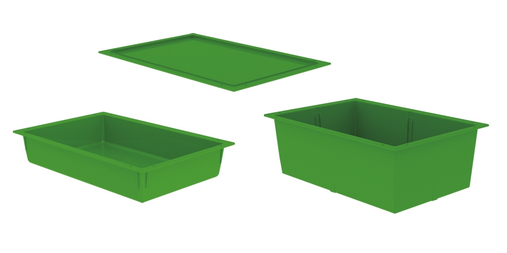 Les modules jaunes et verts sont fabriqués à partir de notre plastique polypropène modifié. Nous l'appelons PP+. Les modules PP+ jaunes sont disponibles dans plusieurs formats. Pour le moment, le module vert est disponible dans les dimensions 600x400x100, non séparable, avec un couvercle assorti 600x400x15 non séparable. Il existe également deux bacs PP+ révolutionnaires aux angles arrondis qui empêchent toute accumulation d'humidité après un processus de nettoyage. Ils sont 600x400 mm modules dans jaunes et verts. Ils sont idéaux pour le stockage et le transport de scopes flexibles. Les modules PP+ verts sont non seulement désinfectables thermiquement, mais également antibactériens.