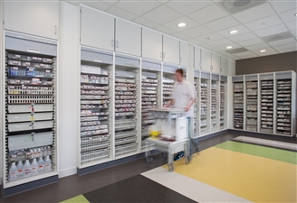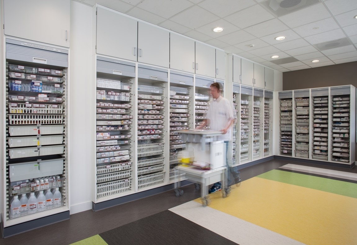 Les espaces des établissements de soins peuvent être aménagés à l'aide d'armoires à médicaments pour stocker les médicaments de manière sûre et responsable. Une grande armoire à médicaments modulaire permet de stocker les médicaments de façon adaptée.