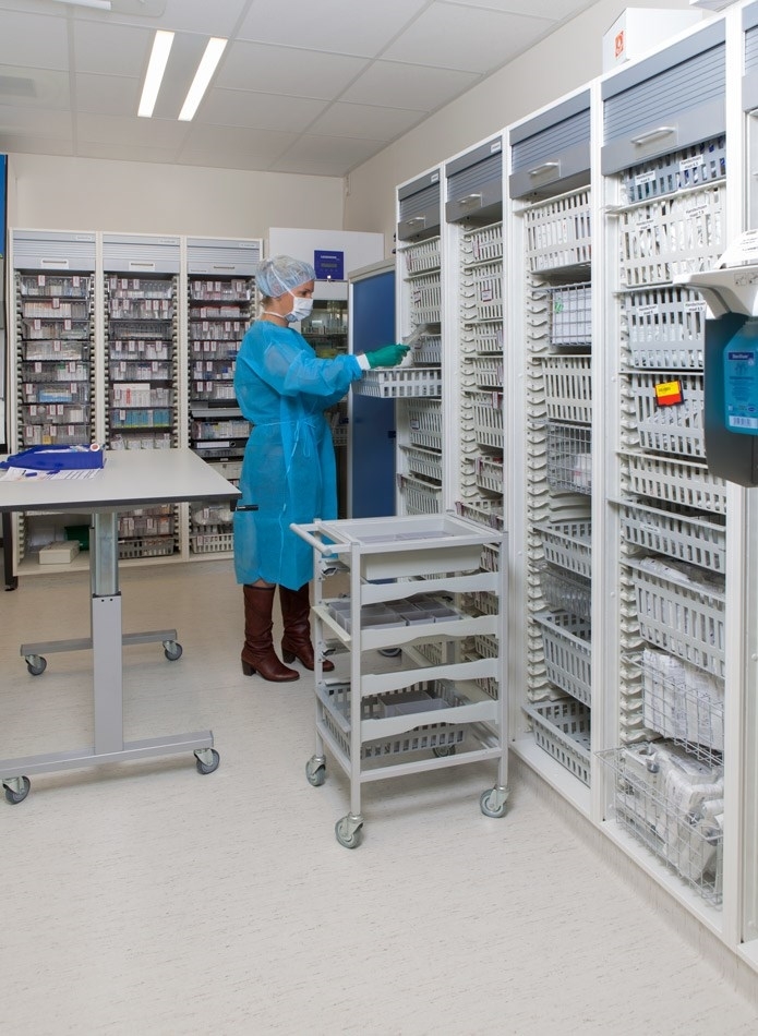 Outre le stockage modulaire des médicaments dans les armoires à médicaments, nos chariots à médicaments, informatisés ou non, et chariots informatiques facilitent le transport des médicaments au sein de votre établissement de santé.