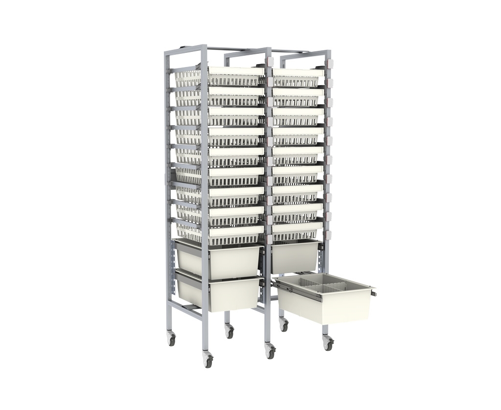 Notre système de rayonnage hygiénique est spécialement conçu pour exploiter au maximum les différents espaces d'un hôpital où les protocoles de nettoyage les plus stricts sont appliqués. C'est pourquoi ce système de rayonnage est tout indiqué pour les salles d'opération et le service de stérilisation centrale (STE). Les rayonnages peuvent naturellement s'utiliser à d'autres endroits de l'hôpital.