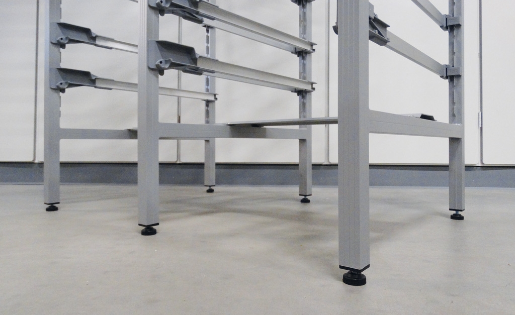 Alu Rack est un système de rayonnage hygiénique complètement fermé et doté de profilés étanches. Comme le système pas de trous non recouverts, toutes les surfaces des rayonnages sont facilement accessibles pour être nettoyées.