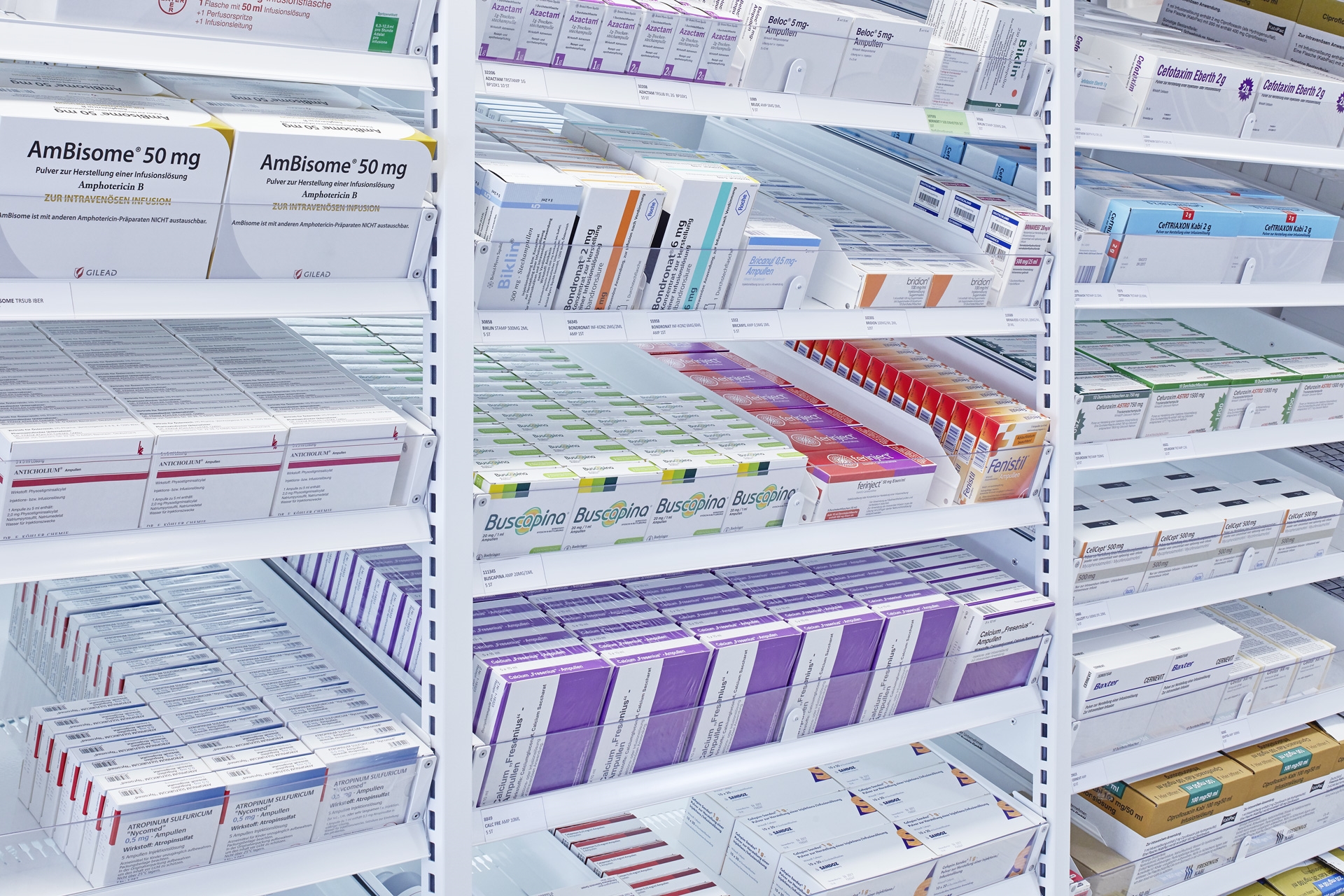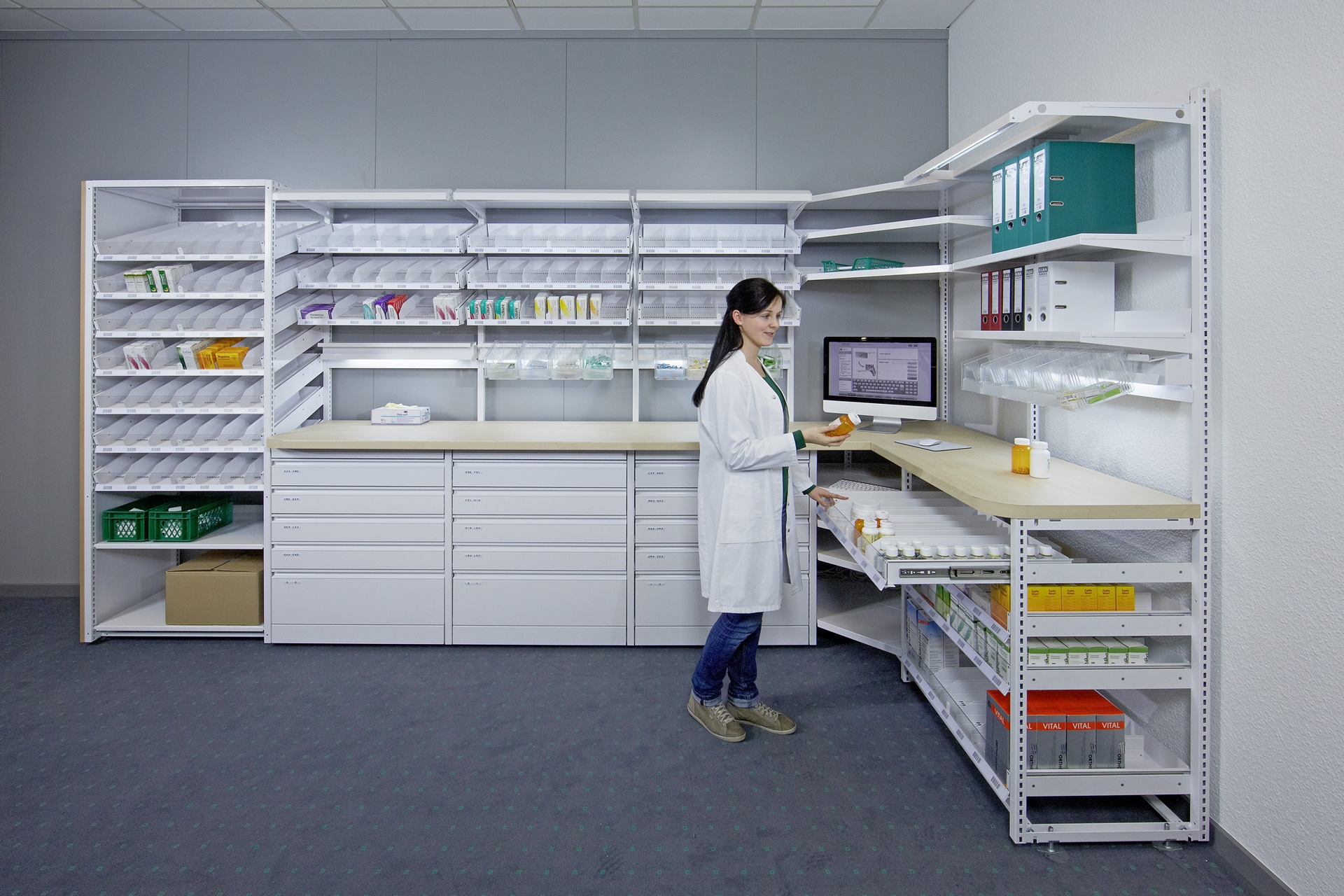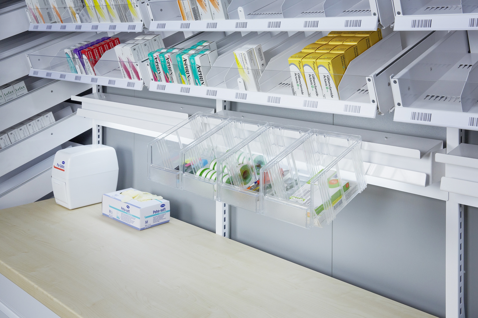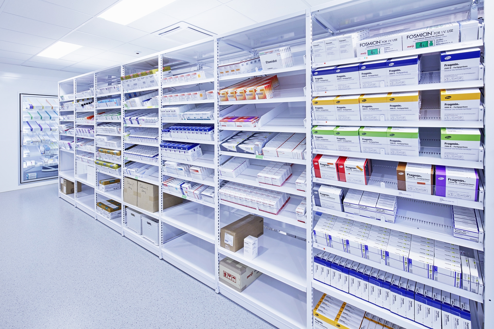 Les rayonnages à systèmes d'étagères Fama sont spécialement conçus pour le rangement et la distribution efficaces et sûrs dans les pharmacies (des hôpitaux). Le système modulaire permet aux hôpitaux et pharmacies de ranger et distribuer les médicaments de façon ergonomique, flexible et sûre.