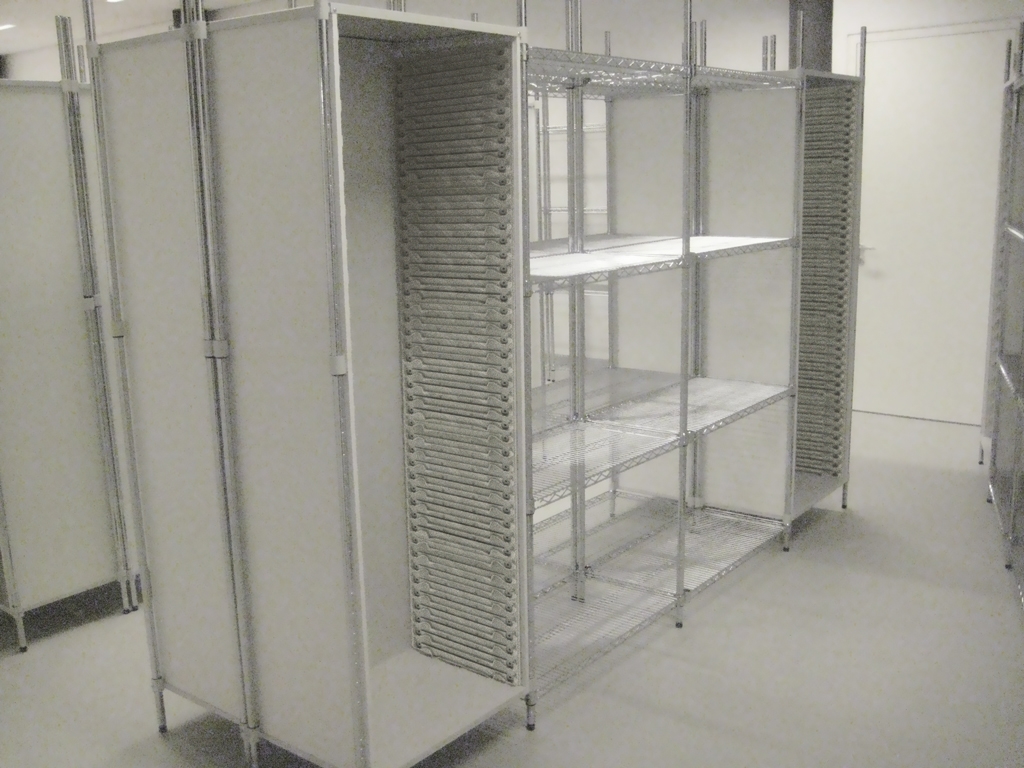 Ces rayonnages sont en outre parfaitement utilisables dans les grandes cuisines, pour le stockage hygiénique des sacs. Ce système ne retient pas la poussière et peut, en option, être aménagé selon un angle de 90°. Vous pouvez de la sorte utiliser l'espace au mieux. Les rayonnages Super Erecta sont multi-fonctionnels, faciles et rapides à monter.
