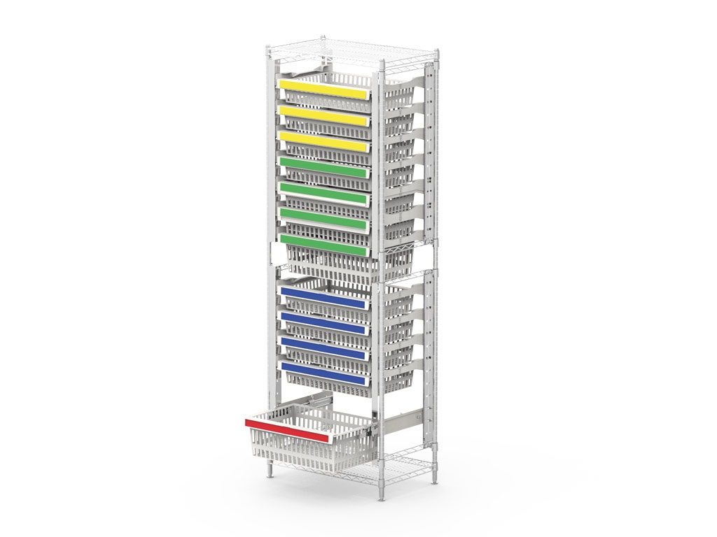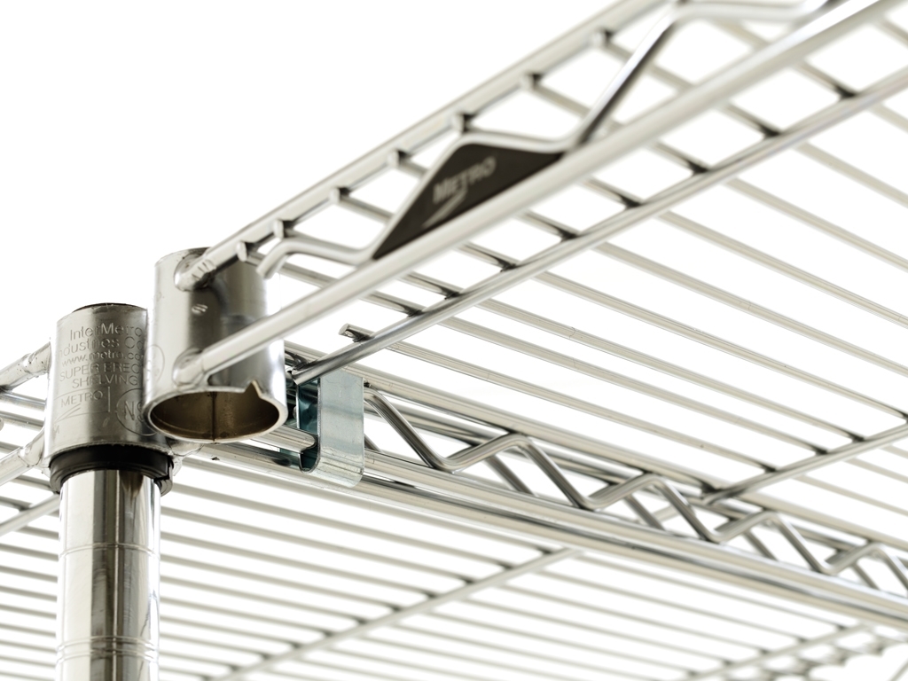 Les rayonnages Super Erecta du Metro ont une allure industrielle / high tech. Ces rayonnages en acier chromé sont largement utilisés dans les salles d'opération et Stérilisation. Ils permettent de stocker des emballages de moyens à grands.